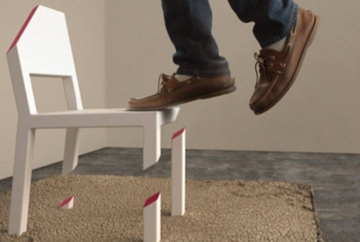 Αν θέλετε να τρελάνετε τους επισκέπτες σας τότε σίγουρα με τη συγκεκριμένη καρέκλα μπορείτε να το πετύχετε . Φανταστείτε την καρέκλα που αψηφά την βαρύτητα σε μία γωνιά του σαλονιού σας και να την κοιτάνε όλοι με απορία σίγουρα κανείς δεν θα κάνει την κίνηση να κάτσει εκεί οπότε μπορείτε να κάτσετε εσείς και να κάνετε τους πάντες να κοιτάνε με απορία. Ο διάσημος διακοσμητής Peter Bristol είναι ο creative director του Carbon Design Group και συνεργάζεται με πολλούς μάγους προκειμένου να δημιουργήσει οφθαλμαπάτες με τον κατάλληλο φωτισμό . Έτσι δημιούργησε την κομμένη καρέκλα όπως την αποκαλεί o ίδιος “Cut Chair”. Όπως βλέπεται και στις εικόνες είναι πράγματι κομμένη και το περίεργο είναι ότι μπορεί και σηκώνει το βάρος ενός κανονικού άντρα . Φυσικά όλη γνωρίζουμε πως δεν υπάρχουν μαγικά έπιπλα οπότε όλη τη δουλειά τη κάνει η μεταλλική πλάκα που βρίσκεται κάτω από το χαλάκι .Το κόστος της καρέκλας ανέρχεται στα 800 δολάρια είναι λίγο ακριβή για καρέκλα αλλά έχει και το χαλάκι μαζί .